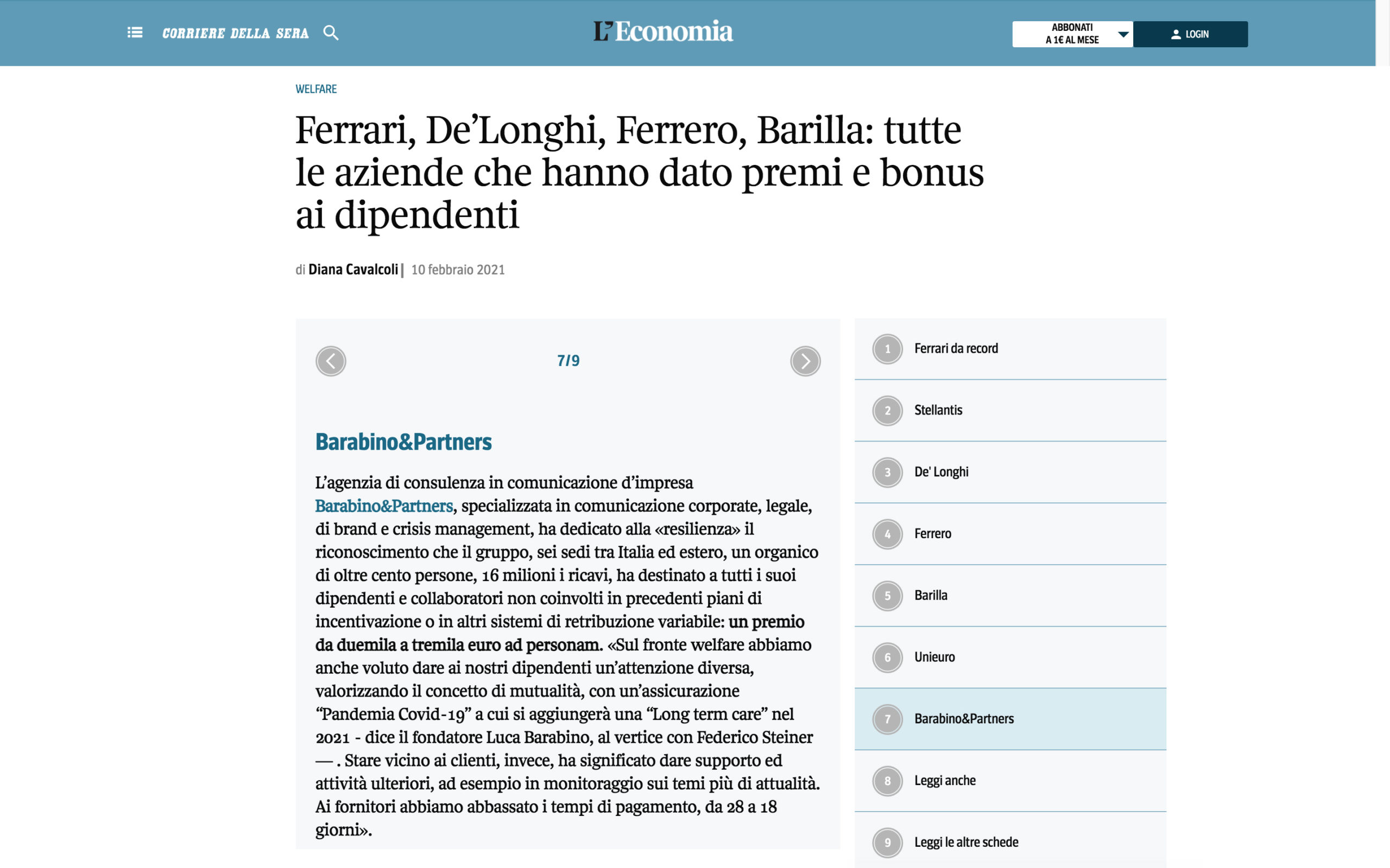 articolo Corriere della Sera impegno sociale Barabino & Partners